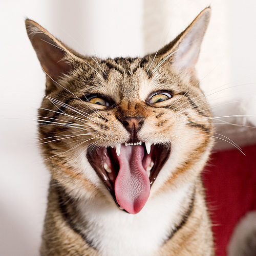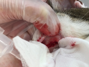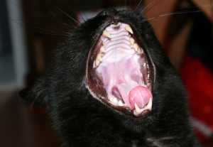歯肉炎が強く起こした猫は非常に口の中を痛がり、食事を食べる時などでも痛い方の口側に顔を傾け、鳴き声を上げながら食べたり、食べ終わった後に前足の手で口の中を引っ掻いたりするしぐさがよく見られます。