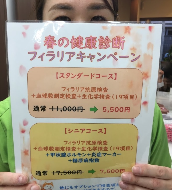 フィラリアの検査に加え、一般的な血液検査が5500円で行えます。