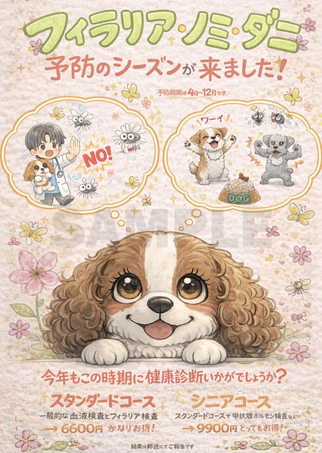 セカンドセレクトでは今年もこのシーズンに合わせて予防薬の販売と健康診断などもお勧めしています。